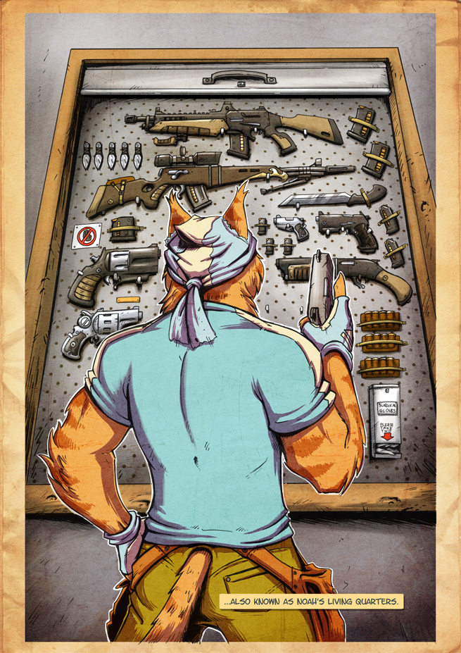 It might be a bit small for you guys to see, but that dispenser on the bottom right reads “surgical gloves. Please take two.” Go here to see a bigger version of the page: http://ben-g-geldenhuys.deviantart.com/art/CS-The-Armoury-336089034