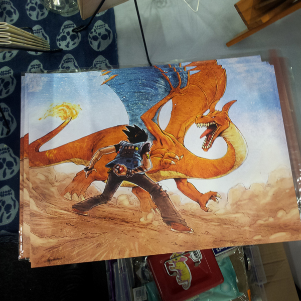 Ben made a punk rock pokémon print featuring Ash and charizard, especially for EGE. It was our top seller!
