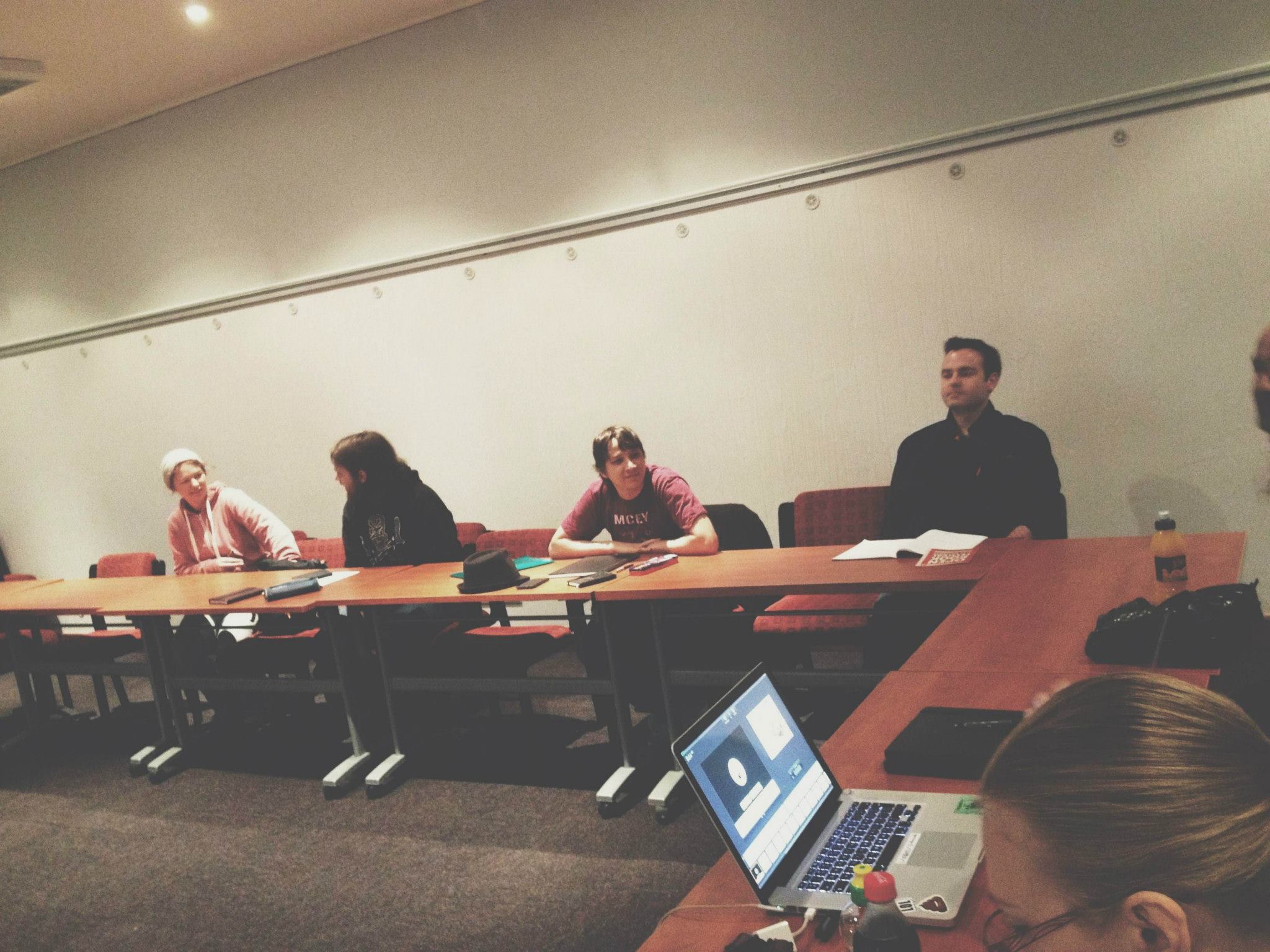 We presented a workshop on webcomics with Ben Winfield and Moray Rhoda. The venue was small (a conference room at the Central Library) but we filled all the seats, plus two or three extra! That was pretty awesome. The workshop was 2 hours long, and somehow we managed to fill it all up, including some Q & A time. Unfortunately we didn’t take photos while the session was in full swing. The light was really awful and all we had were cellphone cameras. Ben Winfield did snap two pics while we were waiting to start though. In the panoramic shot you can see the entire venue.